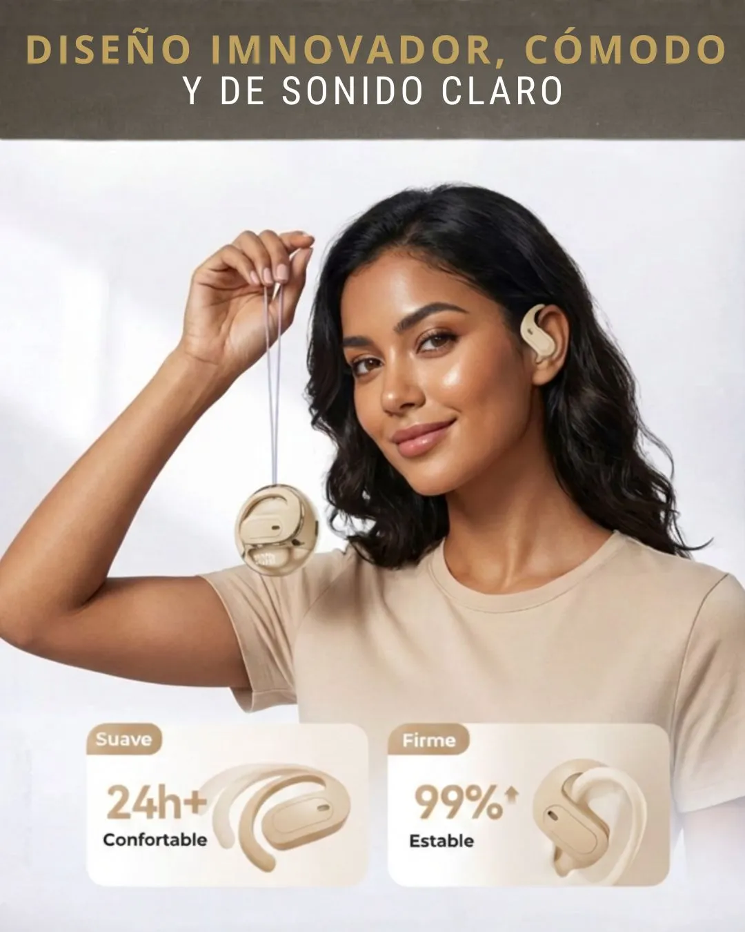 Su diseño ergonómico abierto permite escuchar el entorno sin perder calidad de sonido. Ideal para uso prolongado, con audio Hi-Fi y ajuste seguro.