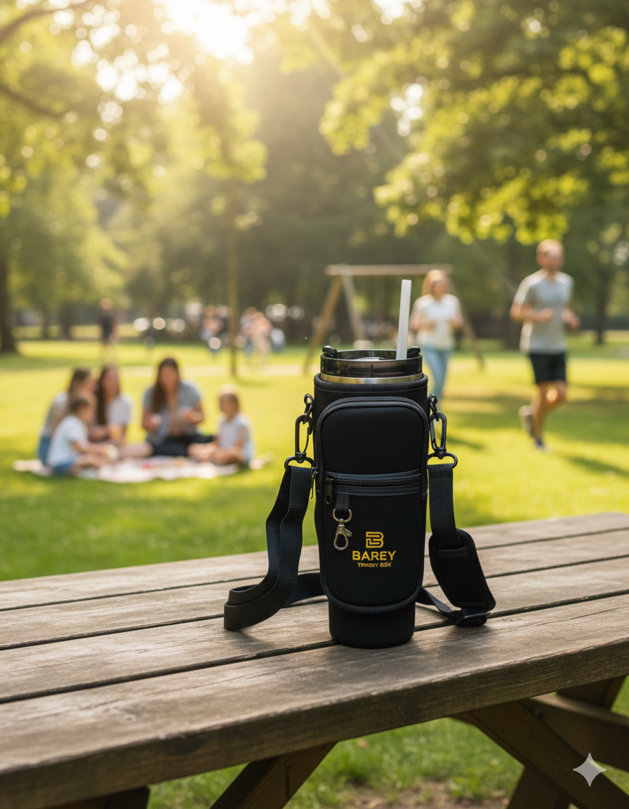 Fabricada con materiales resistentes y lavables, la funda Barey protege tu vaso de golpes y rayones mientras te permite llevarlo con comodidad.